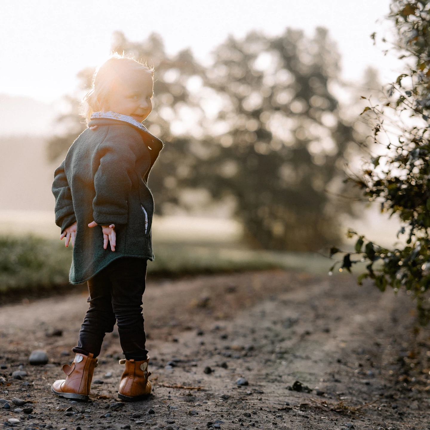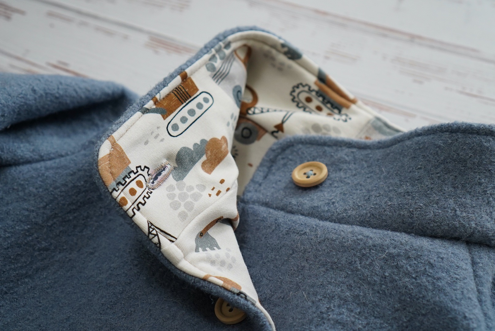 Die Walkjacke wird euer liebster Begleiter von Herbst bis Frühjahr! Sie ist innen komplett mit weichem Jersey gefüttert, wodurch nichts kratzt und sie super bequem und angenehm sitzt. Der hohe Kragen lässt keine Kälte an den Hals deines Kindes und auch die innenliegenden Armbündchen halten jegliche Kälte ab.