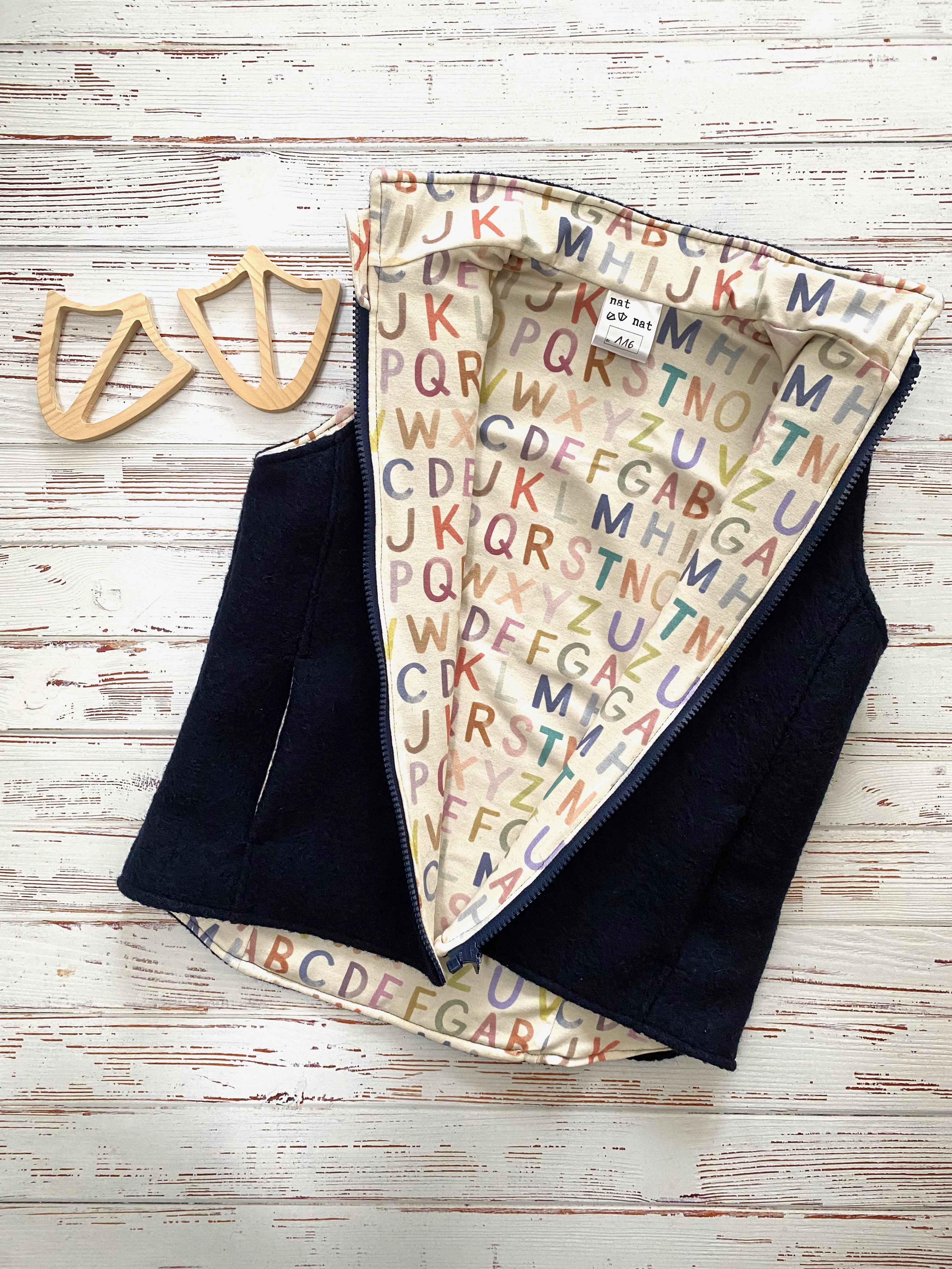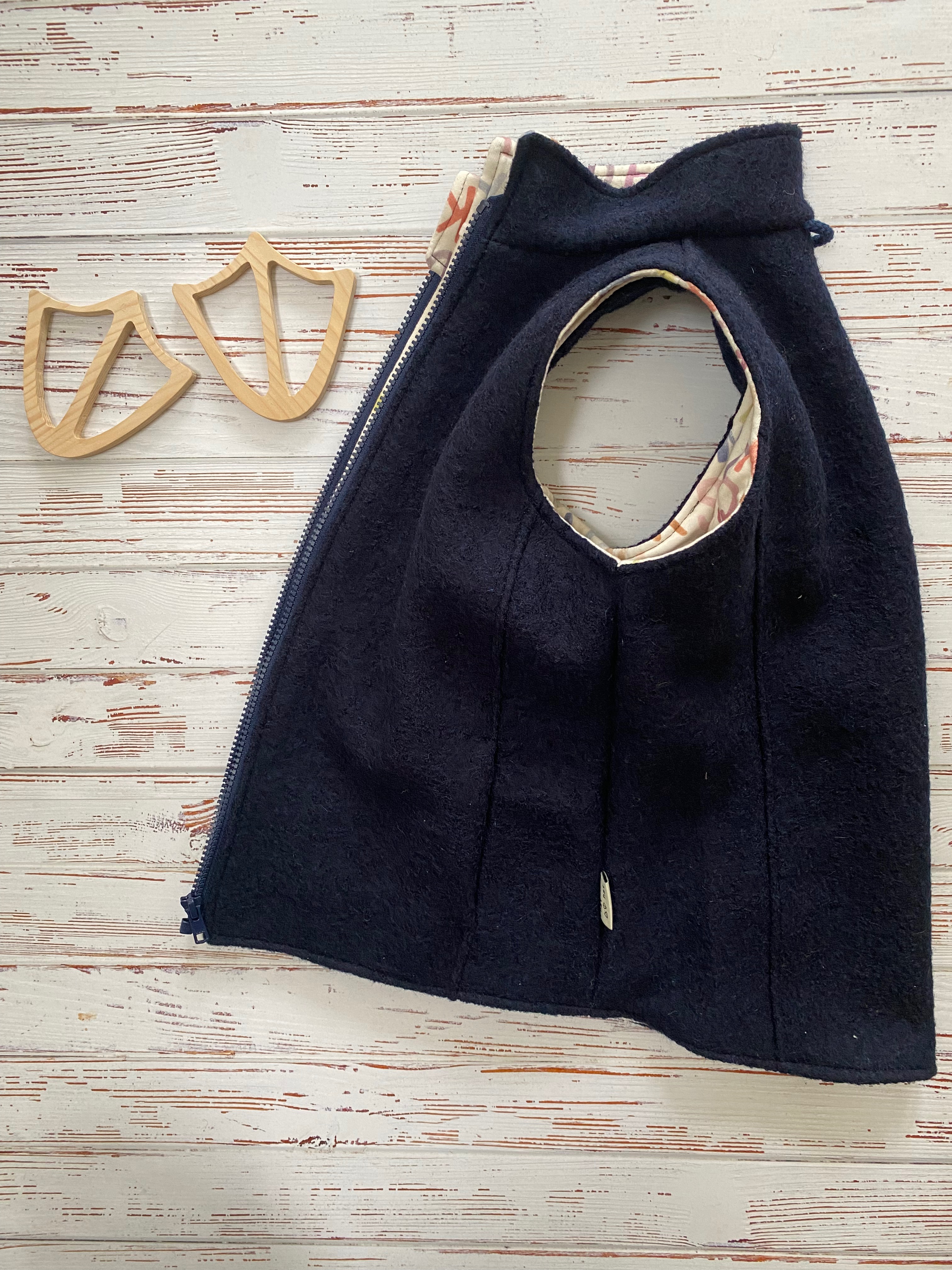 Die Weste fällt größengerecht aus, passt aber auf Grund des Schnitts sehr lang und bleibt euch daher über mindestens eine weitere Doppelgröße erhalten.