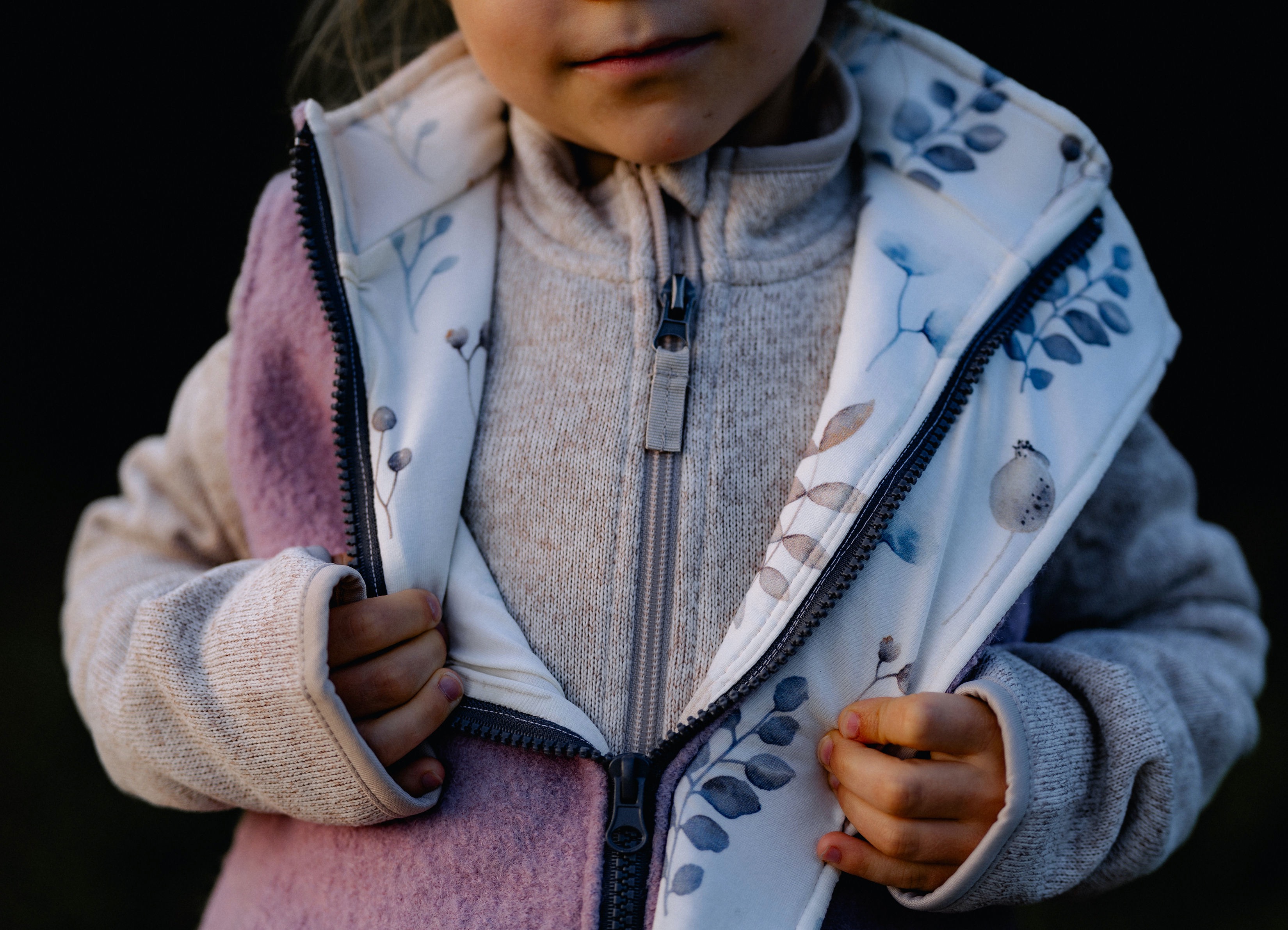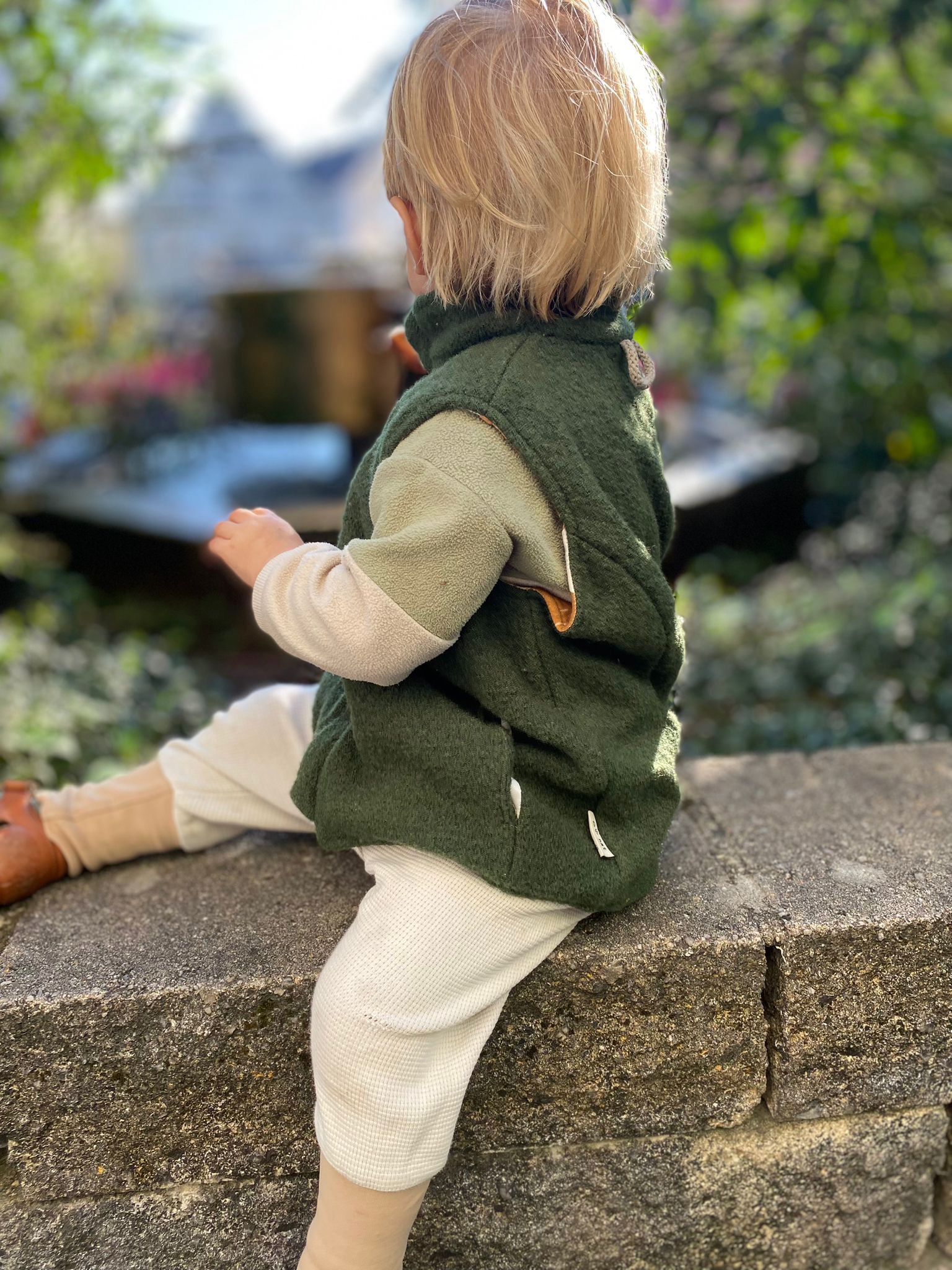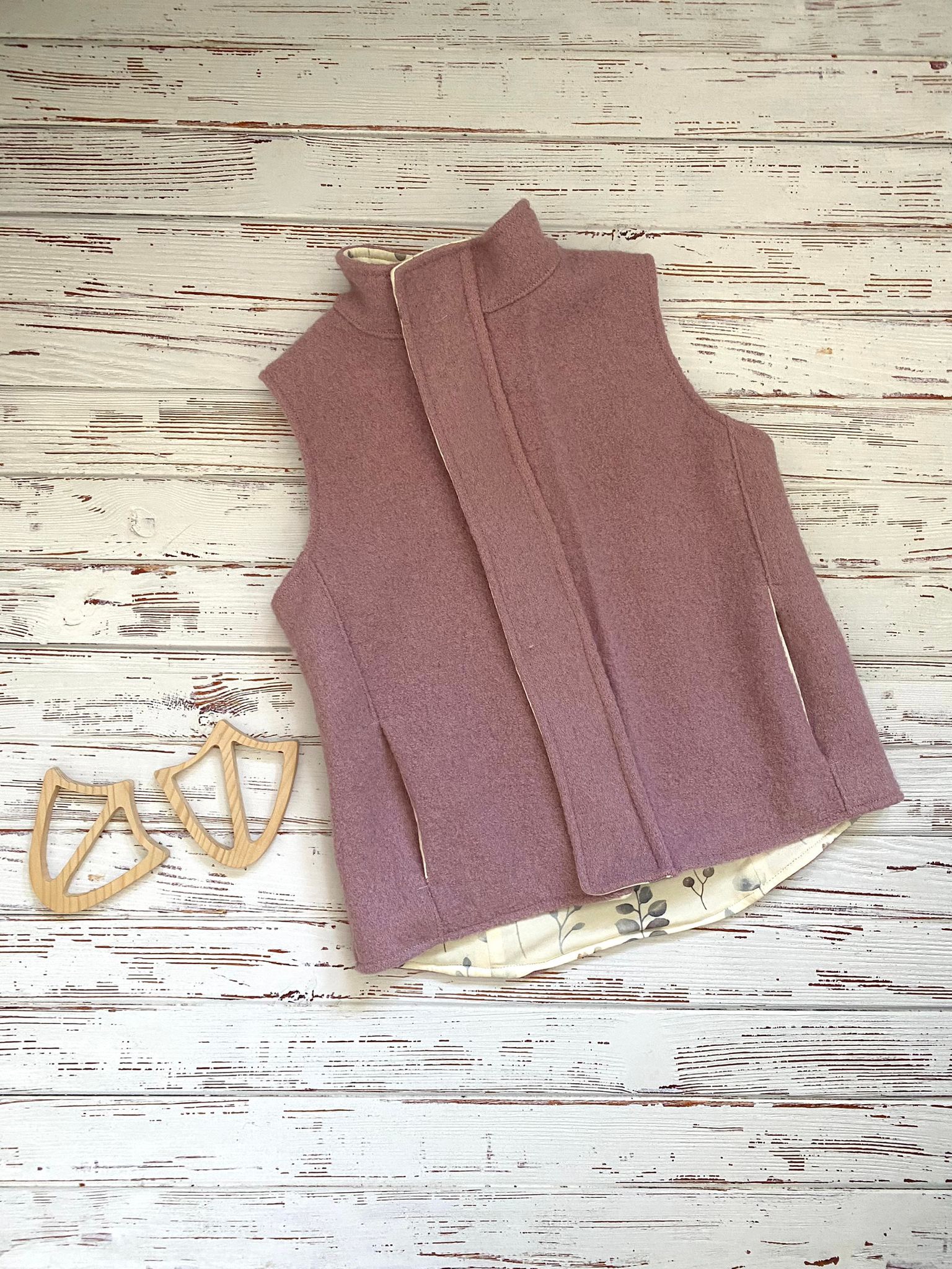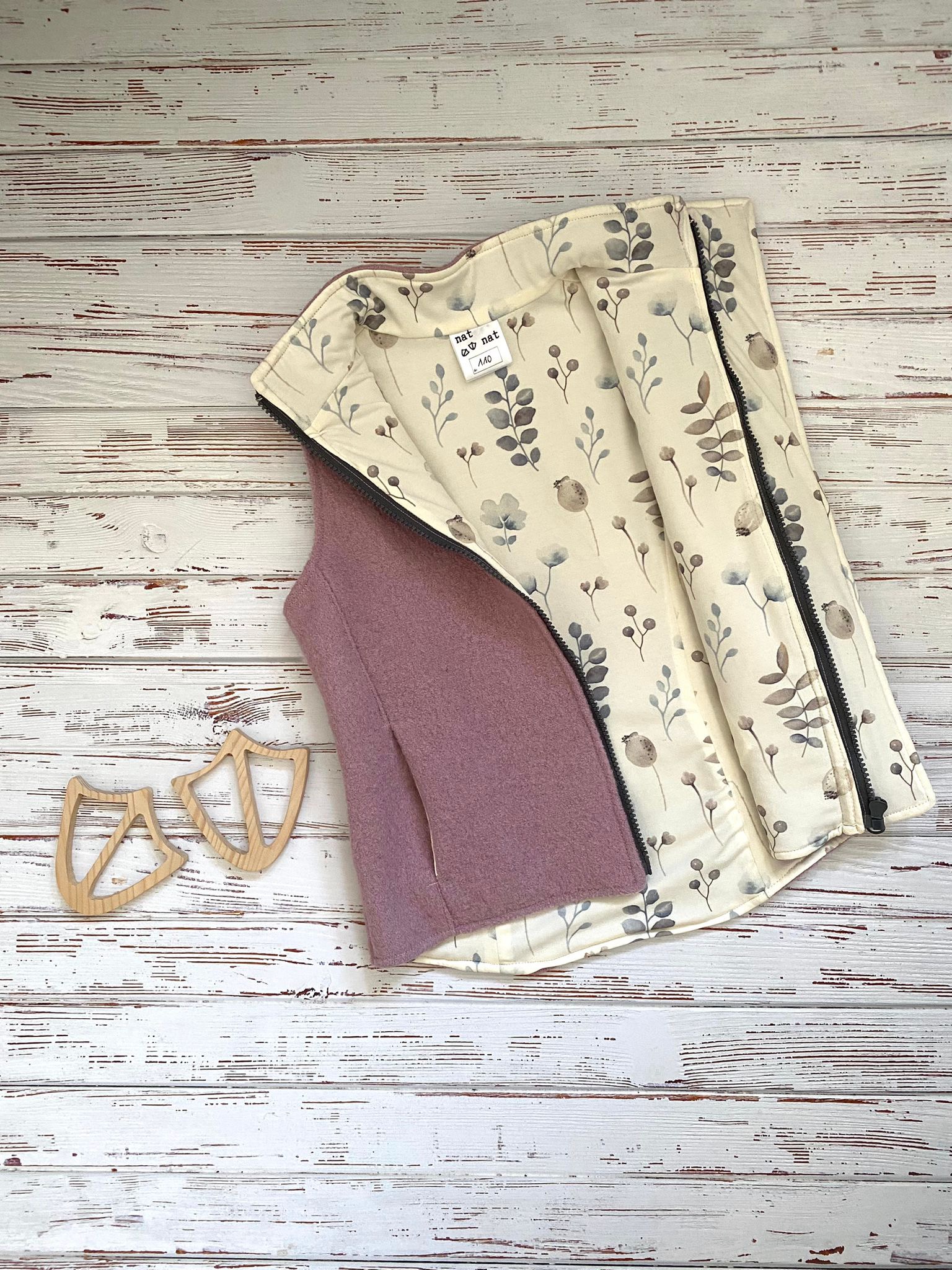 Im Frühjahr oder Herbst ist es häufig noch so richtig schön und dennoch vor allem am Morgen oder Abend ein wenig frisch. Eine Jacke ist dafür meist zu warm - hier ist die Lösung; eine lässige Weste aus Walk. Die Weste wird elegant mit einem Reißverschluss geschlossen, hat Eingriffstaschen und einen Windfang, sodass der Reißverschluss selbst Wind standhalten kann.